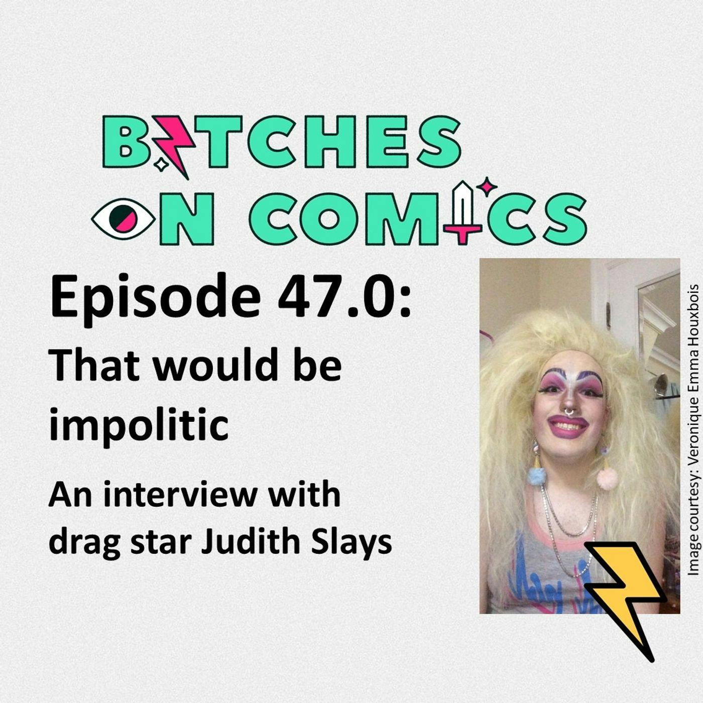 Comments closedThis week we talk to drag star Judith Slays (the persona of Veronique Emma Houxbois) about trans sexuality, trans representation in comics, and her brand…Continue ReadingEpisode 47.0: That would be impolitic